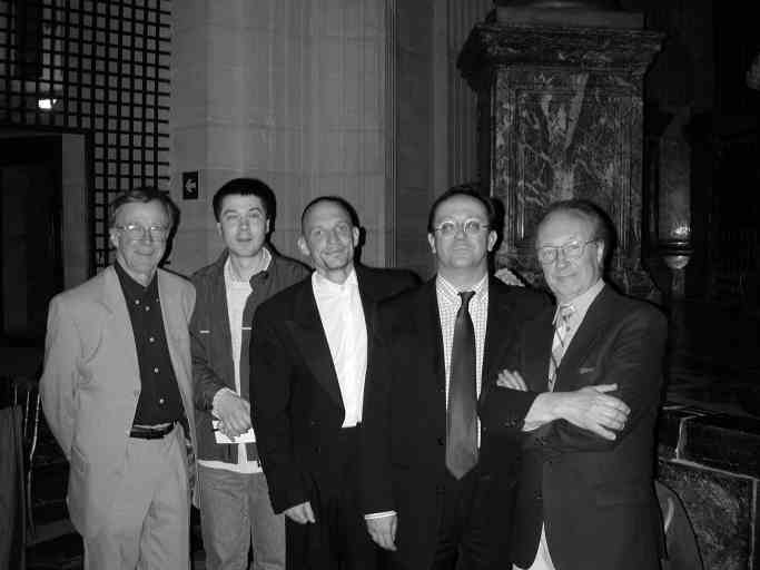 Robert Prudon (Mandala), Julien Bret, Jean Thorel, Hervé Désarbre, Guy Morançon, à l'issue du concert de mai 2002 | ||||||||||||